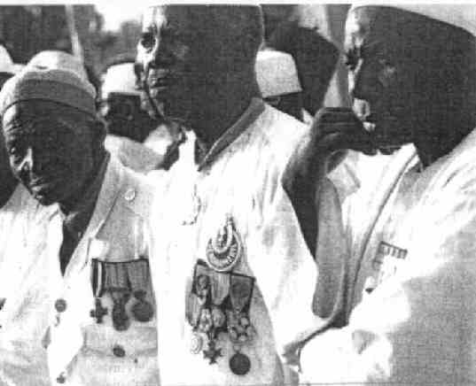 Le président du Sénégal, en présence de ses collègues du Tchad, du Bénin, du Mali, du Burkina Faso, du premier ministre de Mauritanie et de P A Wiltzer représentant Jacques Chirac a inauguré à Dakar le 23 août une journée de souvenir à la mémoire des soldats africains qui ont combattu sous le drapeau français pendant les 2 guerres mondiales. La stèle de bronze représentant un tirailleur sénégalais et un soldat français « Demba et Dupont » trône désormais sur l’ancienne place de la gare rebaptisé « Place du Tirailleur ». |