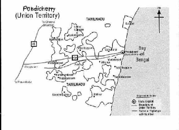 La circulation y est comme partout en Inde, extrêmement dense et hétéroclite, le commerce manifestement fébrile, et de toutes parts s’affichent, sur les buildings comme sur les cabanes aux toits de palmes, les enseignes du genre « Institute of Management »…Qui remarque encore, à l’entrée du Territoire un poste de police où doivent s’arrêter autocars et camions ? Qui surtout peut savoir que si le policier porte un képi couleur garance, c’est la première trace de Dupleix que l’on rencontre ?