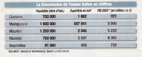 Mayotte n’en est pas membre et il est peu probable que les Comores y consentent à court terme mais l’île a naturellement vocation à participer à terme à la COI.Le sommet des chefs d’Etat de la COI en juillet 2005 a été l’occasion de faire un bilan des activités de l’organisation. La COI a longtemps souffert de faiblesses structurelles (faibles effectifs du Secrétariat Général) et de la définition d’objectifs irréalistes. Fondée pour développer l’intégration économique régionale, la COI a été peu à peu marginalisée avec l’apparition du COMESA (Marché Commun d’Afrique Australe et Orientale) et de la SADC (Communauté pour le Développement de l’Afrique Australe). D’autre part, le statut de la Réunion qui est une « Région Ultra-Périphérique » de l’Union Européenne l’a privée de toute capacité de conclure des accords commerciaux avec ses voisins immédiats qui appartiennent tous au groupe des « ACP » (Afrique-Caraïbe-Pacifique). Les relations commerciales entre l’UE et les ACP sont régies par l’accord de Cotonou. L’intégration commerciale régionale se développe donc sans la Réunion, ni la COI.