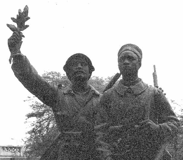 Le président du Sénégal, en présence de ses collègues du Tchad, du Bénin, du Mali, du Burkina Faso, du premier ministre de Mauritanie et de P A Wiltzer représentant Jacques Chirac a inauguré à Dakar le 23 août une journée de souvenir à la mémoire des soldats africains qui ont combattu sous le drapeau français pendant les 2 guerres mondiales. La stèle de bronze représentant un tirailleur sénégalais et un soldat français « Demba et Dupont » trône désormais sur l’ancienne place de la gare rebaptisé « Place du Tirailleur ». |